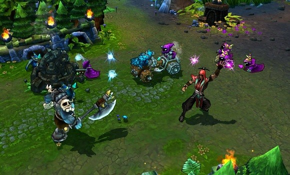 These are Al-controlled soldiers, who generate at the nexus and march down all lanes towards the enemy base, assaulting enemies they meet en route. Scoring a deadly blow on a minion brings precious gold for your champion. Minions will fight with one another, but will assault your champion if he was found alone in a lane. Never underestimate a large wave of minions, especially during the initial time.