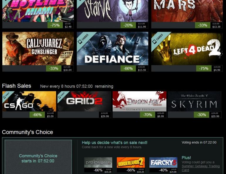 Any titles you want to purchase but are not able to see on the list? Then Community’s Choice is for you. Steam will offer three games every eight hours and ask gamers which one they want for a discount. In the most recent round, players have chosen Borderlands 2, Far Cry 3 or Dishonored for a discount between 40-66 percent.